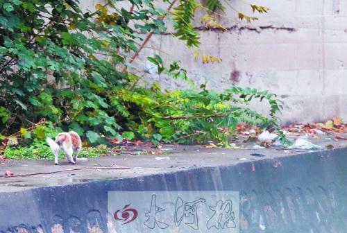 “这只小狗至少在桥下待了两个月了!”就在记者采访过程中,两位刚好路过的大妈都表示认识这条狗,周围的饭店员工和清洁工也给它喂过剩饭。“底下那些各种颜色的塑料袋,都是我们扔下去的。”其中一位大妈说。