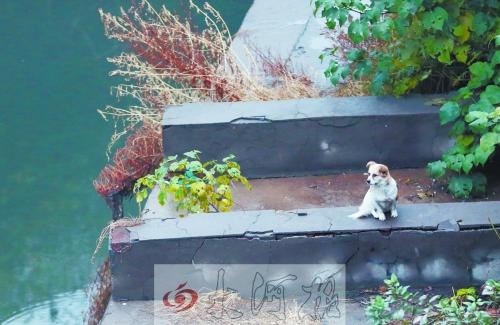 孤单小狗被困州渠旁多日 蹲在水泥墩上“发呆”(图)