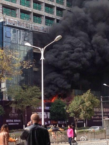 南京一栋在建苏宁电器大厦失火 现已被扑灭(图)