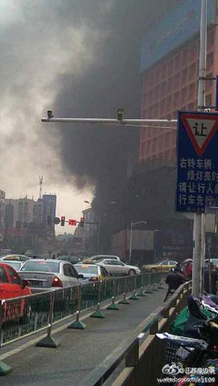 今天上午9点许,有网友向中江网爆料称,位于南京市新街口区域淮海路上在建中的苏宁大楼发生火灾。网友提供的照片显示,现场浓烟滚滚,黑色的烟雾窜了几层楼高。