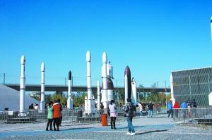 从三号门进入园博园,漫步在满眼金黄的银杏大道,眺望巍峨屹立的永定塔,俯瞰万花遍地的锦绣谷,近观载歌载舞的花车巡游……逛完这些,不少游人都会顺着银杏大道向南来到航天园。随着我国嫦娥三号登月探测器将在今年年底前月球软着陆和自动巡视勘察消息的发布,园博园航天园吸引了大批航天迷。