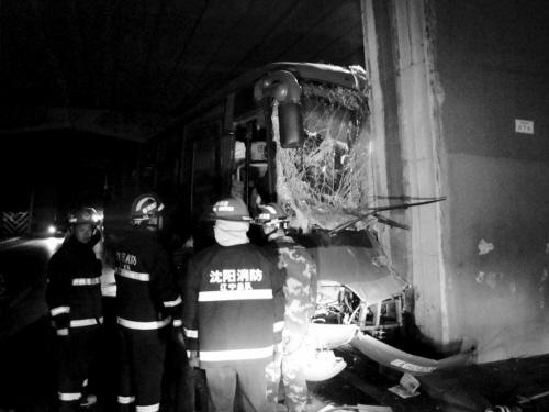 12月12日,17时40分许,铁西区南二环揽军路保工街路口,一辆红色大客车在行驶途中与桥墩猛烈相撞后,桥墩被撞进了驾驶室,司机卡在车内。经过消防人员两个小时的紧急施救,司机才被救了出来。