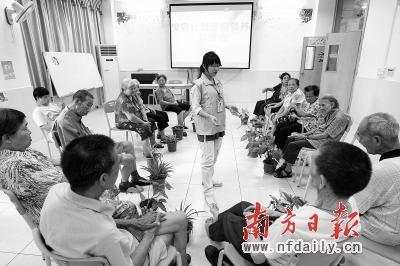社工在给老人家们做活动。南方日报记者 卢奕诚 摄