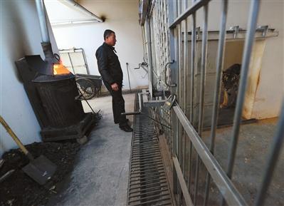 “到底是谁这么吵啊?”同在一个“宿舍”,相比之下东北虎就安静许多,它总是趴在“宿舍”的一角,安静地享受走廊里飘来的热气。饲养员为东北虎架起了炉子。“宿舍”里暖暖的,大白天的,东北虎眯着眼,快要睡着了。