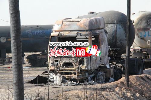 在事故现场东南侧,一辆被爆炸气浪掀翻的液化气运输罐车,仍可以看到有熊熊的明火在燃烧。现场一名消防人员解释称,事故现场的地下罐体阀门处的明火已于11日晚扑灭。之所以这辆液化气运输罐车一直有明火在燃烧,是因为车体内载有约两吨左右的液化气,专业危爆处理人员指导称,如果对罐车强行灭火,很可能会发生回火而引发再次爆炸,为了避免意外,抢险人员决定等罐体内的液化气消耗殆尽后再对罐体进行处置。