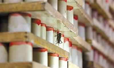 金伟17岁就开始大批量饲养蝈蝈,他的三居室里,几乎所有的墙壁都是摆放蝈蝈的木架,“大概有十几万只吧。”