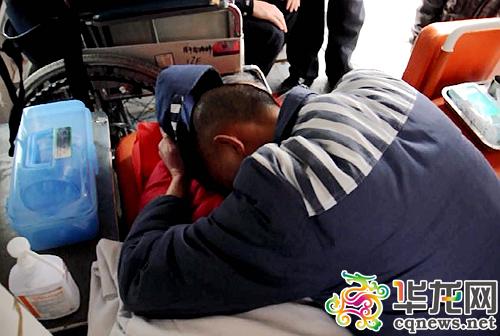 陈佳跪在母亲面前,抱住病危的母亲痛哭。通讯员供图 华龙网发