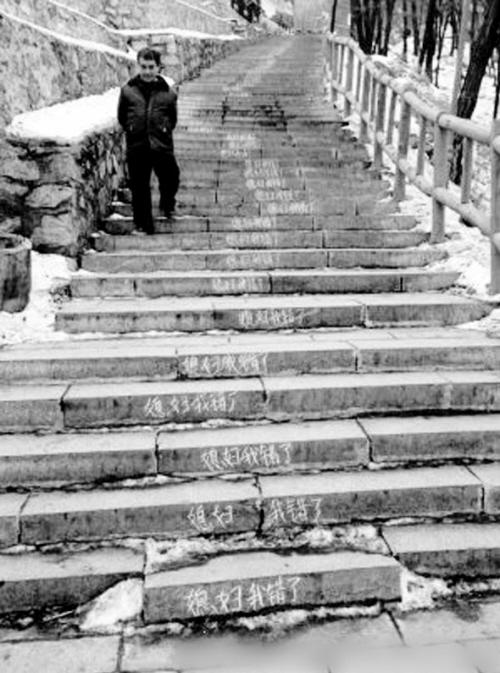 男子为道歉300级台阶上写满“媳妇我错了”(图)