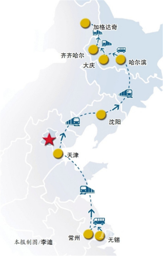 从无锡到加格达奇,几乎横跨半个中国,小孙的回家是这样走的:24日从无锡乘汽车前往常州,从常州北站上火车,先到天津,再到沈阳,再到哈尔滨。在哈尔滨看看老人和朋友,27日乘坐汽车前往大庆,再由大庆火车站出发去齐齐哈尔,为了能尽快到家,他买了两张齐齐哈尔到加格达奇的车票,一趟快车一趟慢车,赶上哪趟就坐哪趟。