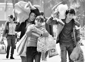 28日,不少人已动身回家。预计29日和30日上午,省内客流将达到最高峰。 本报记者 李汉仁 摄