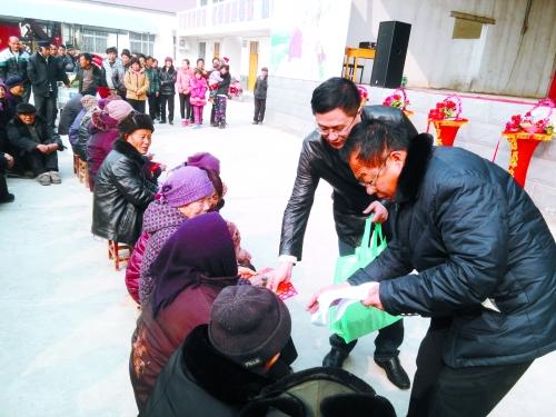 1月28日,郸城县汲冢镇谢寨行政村游子史少华衣锦还乡,在该村文化大院集中为全村190名70岁以上老人每人发放300元钱,老人们纷纷竖指称赞。