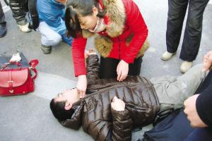 男子地铁口突然晕倒 女孩跪地做心肺复苏救人(图)