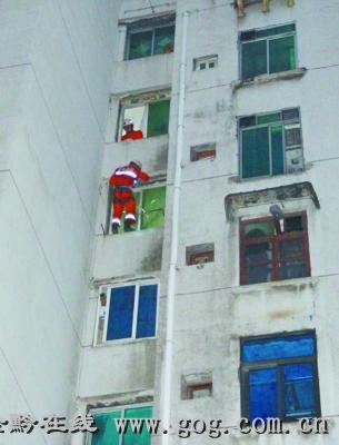 两岁娃娃被锁7楼家中 消防“空降”解救(图)
