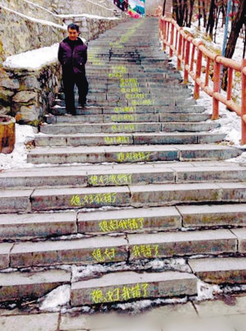 男子300级台阶写满“老婆我错了” 网友吁其老婆清理