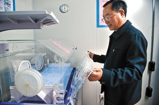 广州市社会(儿童)福利院院长徐久演示如何操作保温箱 羊城晚报记者 周巍 摄