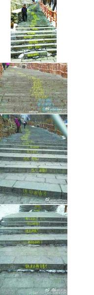 平顶山森林公园300级石阶被写“媳妇我错了”