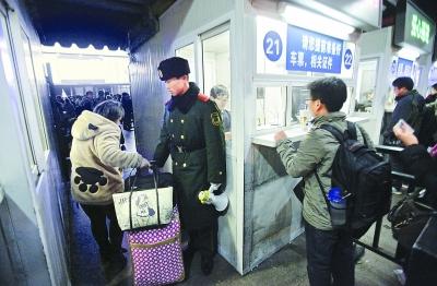 曾经参加过奥运安保、国庆60周年阅兵的杨涛,见惯了大场面。春运带给他的是一次又一次这样的突发状况,面对的是一个个神色焦急的旅客。他曾遇到因身份证号不符被检票员拦下的姑娘。“哭得乱七八糟的,都快把我的心哭乱了。”不过,规定是不讲情面的,不管是骂他的男人,还是求他的姑娘,他必须按规定执行。