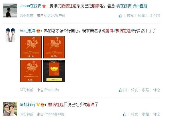图说:多位网友反映微信红包系统崩溃。微博截图