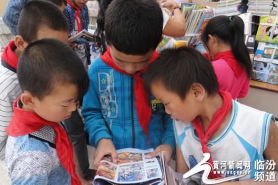 大宁县岭头小学的孩子们拿着志愿者捐送的书籍爱不释手