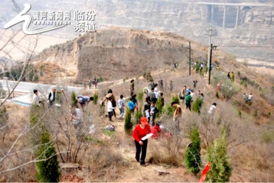 临汾志愿者团队组织在吉县黄河岸边“三北防护林”带区义务植树,倡导水土保护意识