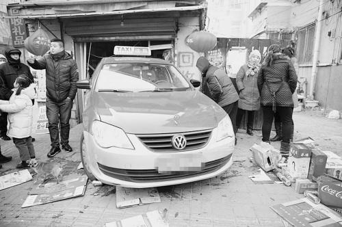 两出租相撞 一辆车原地旋转“甩”进小卖店(图)
