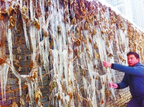 雪后房檐、围墙挂满冰挂 犹如瀑布静止(图)