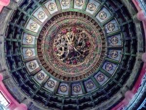 记者注意到,万春亭宝顶上有云文,天花板上绘有双凤,藻井中央雕有盘龙。“我记得去年来这参观时,明明龙嘴衔着悬珠,怎么现在什么都没有了呢?”刘女士对此提出质疑。