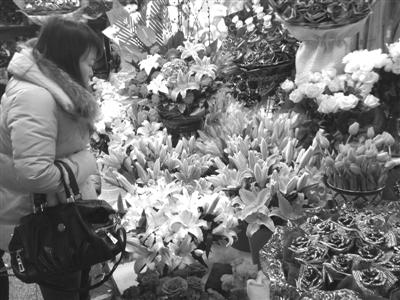 和女朋友相恋半年的孙鹏9日特地赶到鲜花批发市场。“我订了一束9支的‘天长地久’,希望我们的爱情也如这花的寓意一样。”孙鹏说,自己来之前问了附近的鲜花店,即使预订,零售价也要15元一支,批发市场的售价低,提前预订也不加价,比较划算。