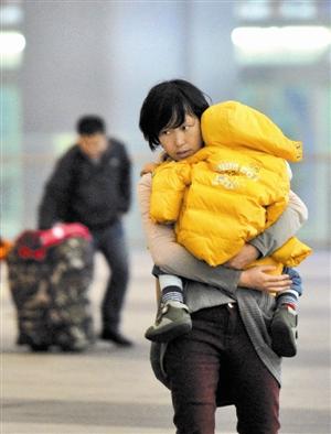 昨日降温明显,深圳北站,大人把孩子裹得严严实实地抱在怀里,遮蔽风寒。 记者 何龙 摄