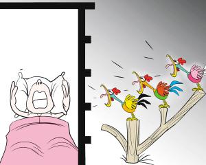 业主陈阿姨说,小区以前没有出现鸡叫声,鸡叫声是从春节才开始出现的。她原本就有点神经衰弱,半夜里被公鸡叫声吵醒后,一晚只能睡三四个小时,睡眠严重不足,精神也大不如前了。