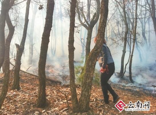 曲靖市消防支队任俊告诉记者,消防支队于下午1:37接到报警,下午1:41,消防迅速调派麒麟大队、经开大队、特勤中队共15辆车70余人赶往现场扑救。当日风力比较大,瞬时风力可达七八级,人走在路上有点发飘,火借风势,风助火势,迅速扩散。记者在现场看到,由于曲靖市区多日无有效降雨,加之山上植被较多,地面又有大量干枯杂草树叶,一些刚被扑灭的山火被风一吹又死灰复燃……