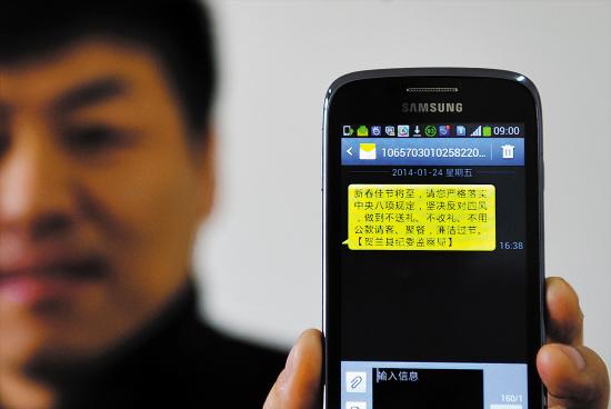 公务人员收到节前发送的廉洁过节短信 新华社发