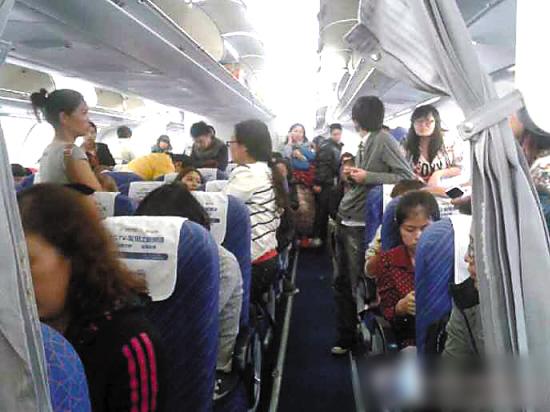 航班到达广州白云机场后,乘客拒下飞机 网友图片