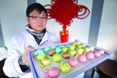 目前黄先生一天可以做出近百只这种彩色汤圆,基本上过了中午就卖完了。彩色汤圆的价格并不贵,4块钱就可以买6个,还可以挑一个小爪子形状的元宵。据了解,来买这种汤圆的多数是年轻女孩和小孩子。(扬子晚报记者 刘浏 文/摄)