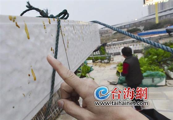 住户去楼顶收衣服,却发现衣服上密密麻麻地粘附着黄色粪便状物。而且,百余平方米的楼顶,衣服、瓷砖、菜叶等上面都遍布着数不清的这种异状物。