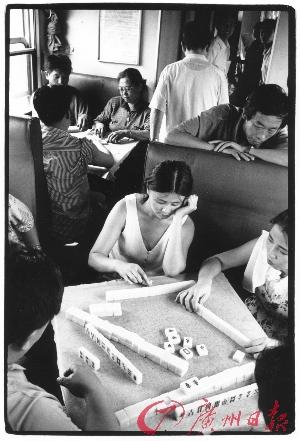 1994年,从北京开往沈阳的列车上打麻将的旅客。王福春 摄