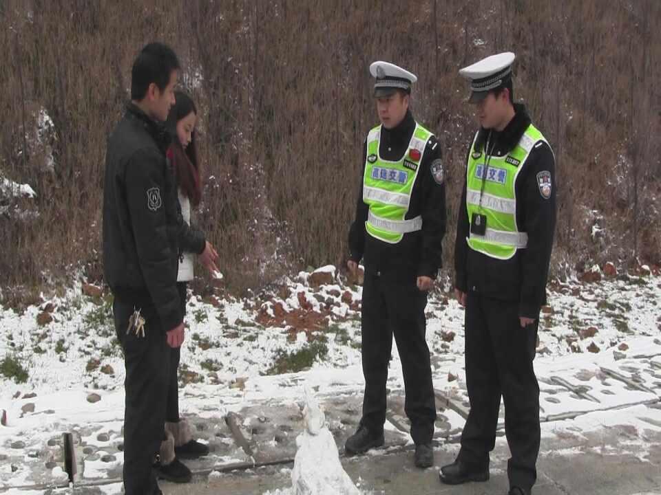 2月11日,怀新大队洪江中队在巡逻过程中劝阻一对在高速公路上堆雪人、秀恩爱莫的热恋情侣,及时消除一起交通安全隐患。
