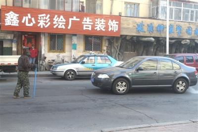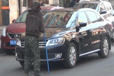 当时记者驾车从海城街准备往木介街左转弯,等了2个信号灯也没有转过去,向木介街望去看到有一些滞留车辆。随后记者驾车经过木介街时看到,一名男子拄着蓝色的拐杖,正在拦截过往车辆乞讨。此时已有一名车主已经拨打了110报警电话。