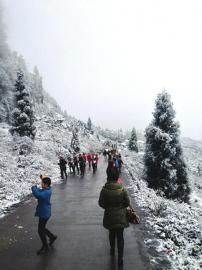 此外,由于连续降雪,最近前往叙永县丹山观雪的居民也增多。不过昨日,交警已对玉皇观景区道路实行交通管制,车辆不能直接进入景区。欲前往观雪的游客可驾车到达山河分岔口,然后徒步走到景区,预计步行时间为40分钟左右。