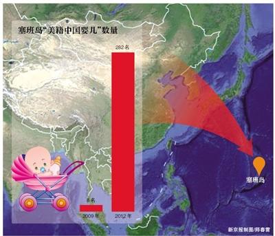 昨日,美国媒体报道称,中国妈妈在美属热带岛屿塞班产子的数量正飞涨,从2009年仅8名婴儿一跃增长到35倍,到2012年达282名婴儿。这意味着,塞班出生的婴儿中71%是“ABC”——美国出生的中国人。