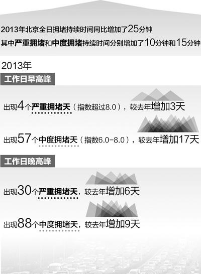 去年日均堵车近2小时 拥堵由核心区向外围蔓延