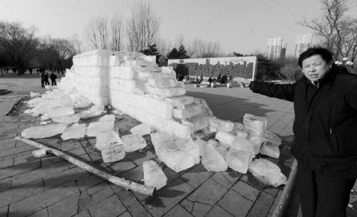 原本预计展出到三月份的冰雕、雪雕,为何只有十多天的短命?采访中,有市民质疑施工质量存在问题。为此,记者采访了劳动公园相关管理人员,园方表示公园内的冰雪建筑不存在施工质量问题。