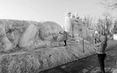 吃元宵、看冰灯、赏雪雕,这是正月十五北方的传统习俗。为此,今年的劳动公园里也建起了六米高的冰滑梯,和十几米长的巨型雪雕“睡美人”。可眼下正月十五还没到呢,这组宏伟的冰雪建筑就挺不住了。