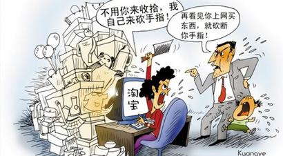 小熊说,老婆每天一下班就黏在电脑旁上淘宝网,不做饭,也不做家务。“她什么东西都喜欢在淘宝上购买,尤其跟商场比了差价后,更是经常会兴奋不已,觉得又省了一笔钱。”