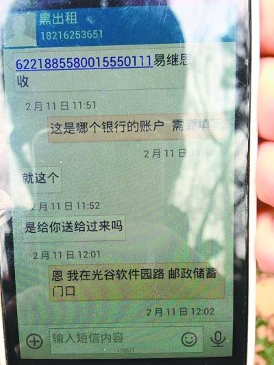 “黑的”司机发来索要报酬的短信。