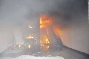 此时,火势处于猛烈燃烧中,闻讯赶回的房主告诉消防官兵,一楼还存有柴油罐,恐怕发生爆燃。