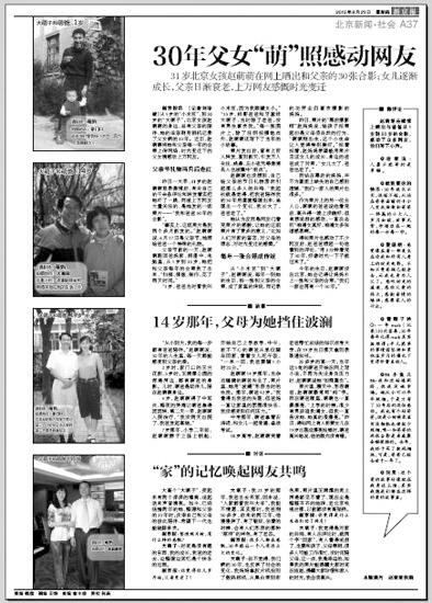 北京女孩晒30年父女合照走红 照片登春晚再引关注