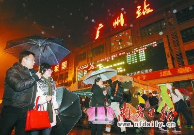 昨晚的低温阴雨天气给市民的出行带来影响,但广州火车站秩序井然。记者 吴伟洪 摄