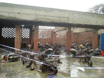 停车棚起火 40余辆摩托、电瓶车被烧烂(图)