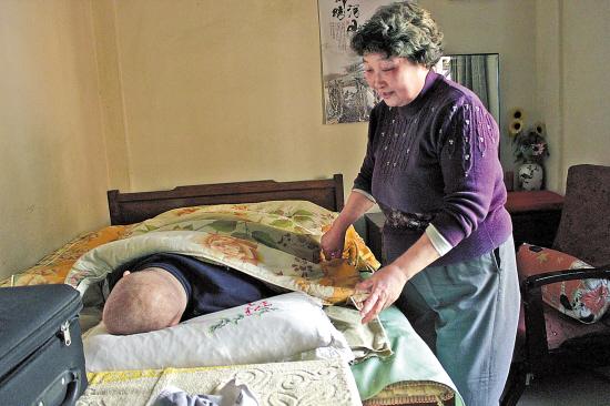 伟仔的父亲温叔已经72岁了。曾经是一名警察的他身体消瘦但精神矍铄,还骄傲地拿出他的三等功勋章和大大小小的荣誉证书。2011年他得了肝癌,动手术后恢复得还不错。他的脸上皱纹深深,总掩着抹不去的担忧。他说,虽然我们俩有退休金,经济上不算太艰难,可是我们已经七十岁了又各自生病。现在连去看病都要想尽办法调时间,等我们百年之后……不敢想啊!